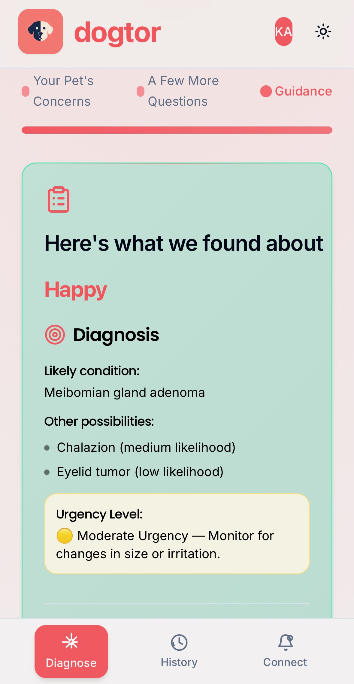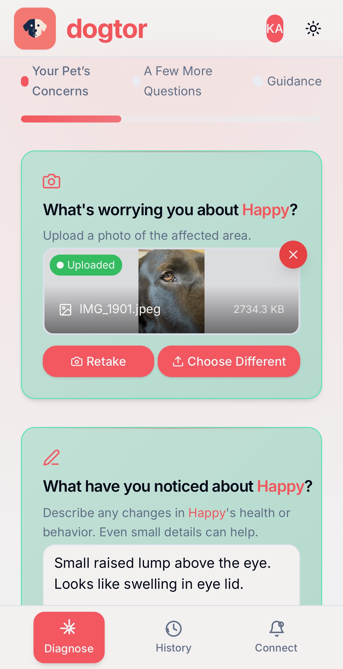 Dogtor turns a quick photo and a few details into clear, vet-ready guidance — in minutes.